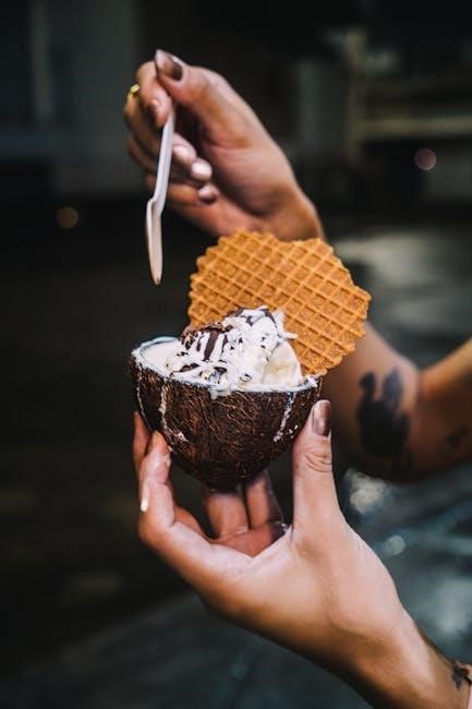 The manual emphasizes proper assembly and ingredient preparation for best results. This model simplifies the process, making homemade frozen treats accessible to everyone.